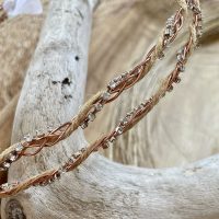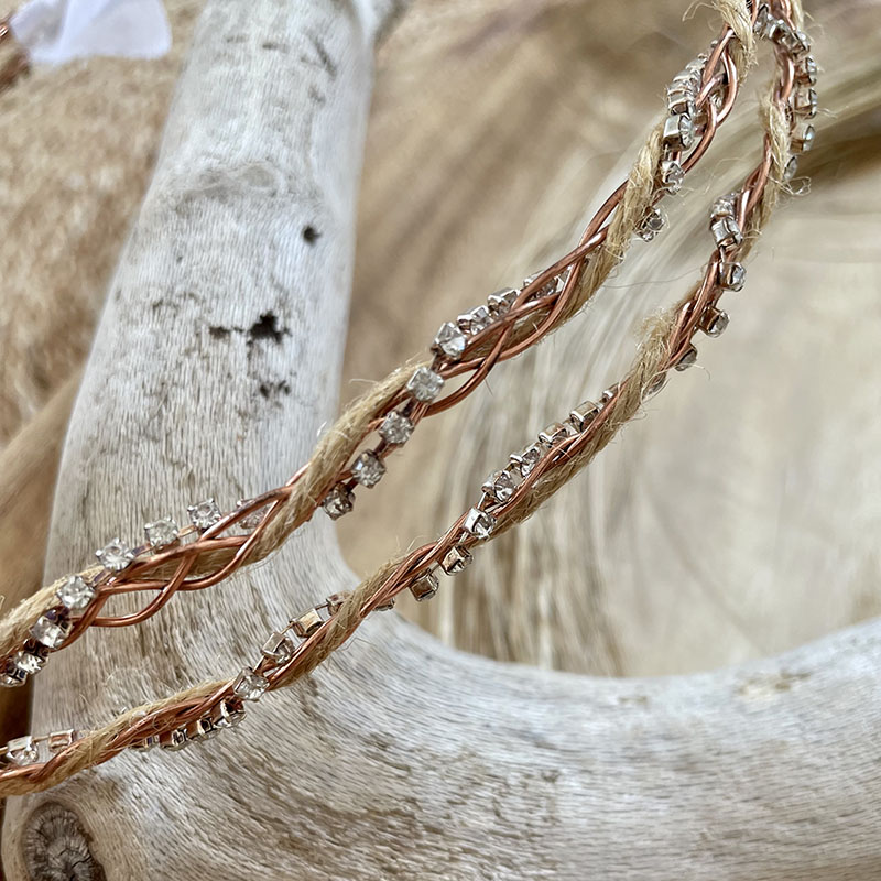 Unique wedding crowns from twisted silver plated rods, in matte gold and silver, tied with thin ribbons.