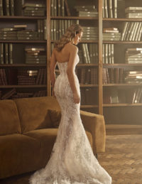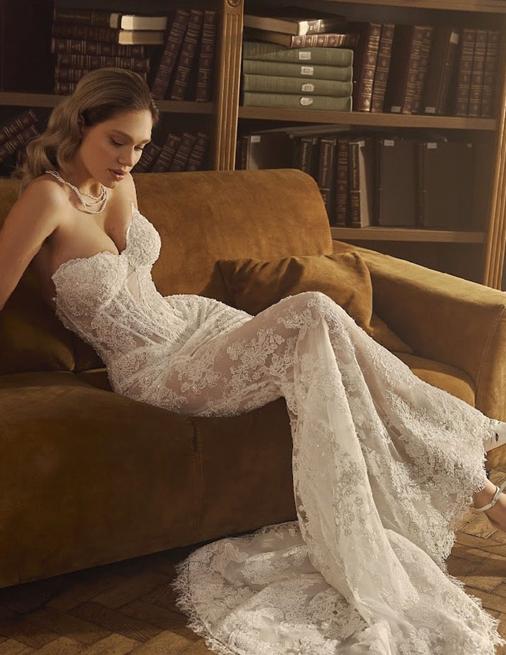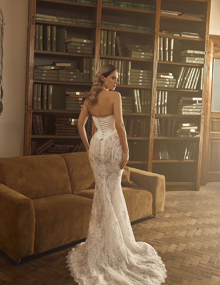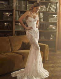 Αισθησιακό γοργονέ φόρεμα από τούλι με γκλίτερ και δαντέλα.Μια άκρως θηλυκή επιλογή που λεπταίνει τη σιλουέτα χάρη στη χαμηλόμεση φούστα που αγκαλιάζει τους γοφούς και ανοίγει στο κάτω μέρος. Κομψό νυφικό με μακριά αποσπώμενα μανίκια που αναδεικνύει τη θηλυκότητα.