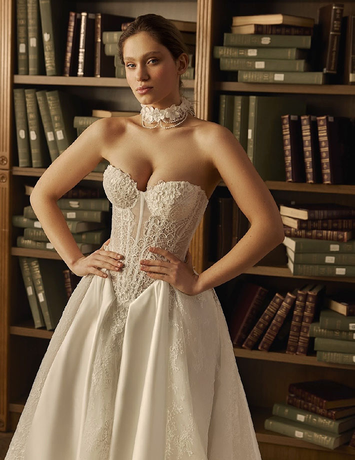 Όλα τα νυφικά διατίθενται σε ιβουάρ και λευκό χρώμα.