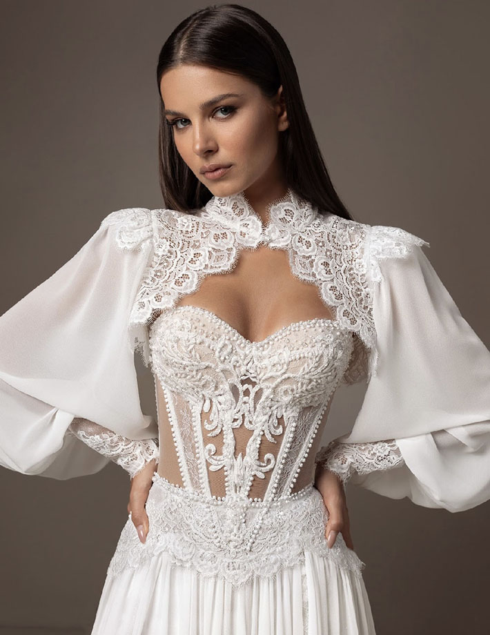 Όλα τα νυφικά διατίθενται σε ιβουάρ και λευκό χρώμα.