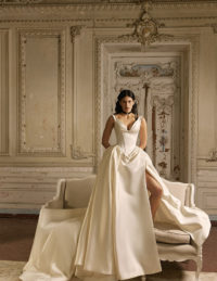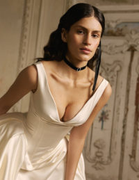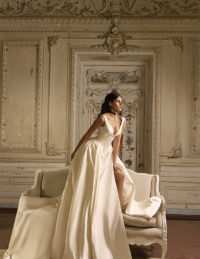 Το νυφικό Hosta είναι μία ρομαντική δημιουργία που συνδυάζει διαφάνεια, δαντέλα, μουσελίνα και αέρινες πινελιές. Το εφαρμοστό νυφικό φόρεμα αγκαλιάζει ιδανικά τη σιλουέτα, ενώ οι ασύμμετρες λεπτομέρειες από μοθσελίνα δίνουν κίνηση και χάρη. Το illusion μπούστο με δαντέλα και τρισδιάστατα λουλούδια προσθέτει μία ανάλαφρη, φλοράλ διάθεση. Ιδανικό νυφικό για τη ρομαντική νύφη που αναζητά κομψότητα, φινέτσα και μοντέρνα αισθητική σε μία ξεχωριστή bridal εμφάνιση.