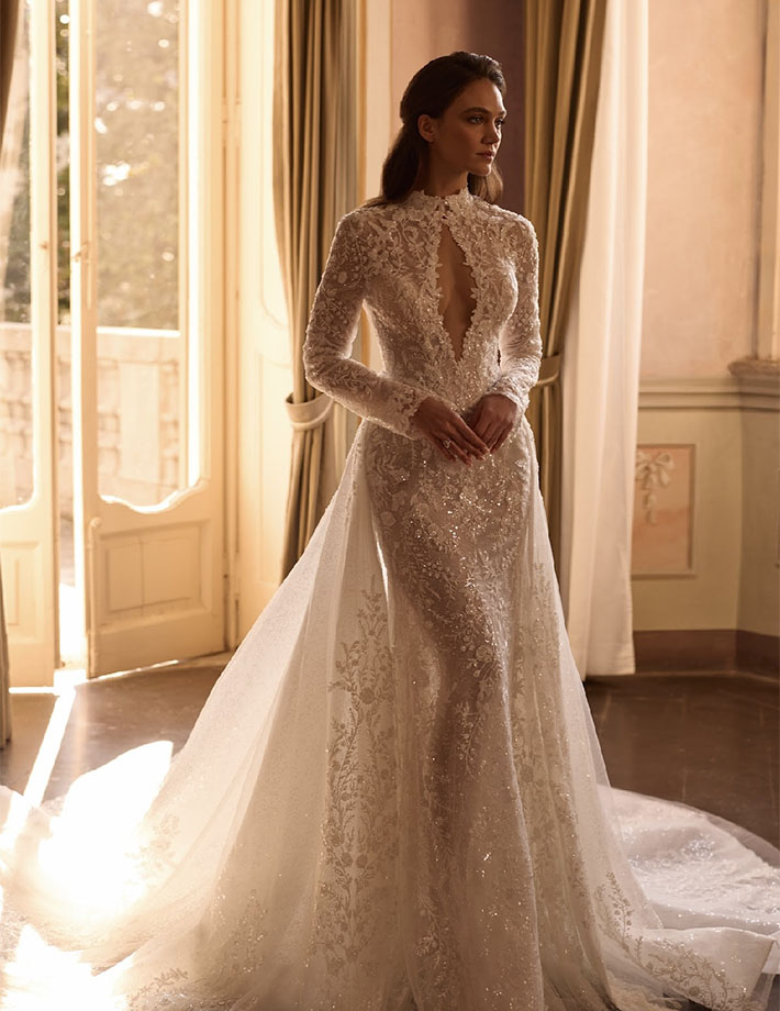 Αυτό το princess νυφικό είναι μια δημιουργία από ντελικάτο τούλι, διακοσμημένο με πολύτιμες πέτρες. Το νυφικό Provance σε princess γραμμή από την collection Egosm έχει ντεκολτέ σε σχήμα καρδιάς με εξωτερική διαφάνεια από κεντημένο τούλι και κλειστή πλάτη. Με τα μακριά τούλινα κεντημένα με πολύτιμες πέτρες μανίκια, αυτό το νυφικό είναι αδιαμφισβήτητα μια κομψή επιλογή.