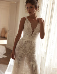 Αυτό το εκθαμβωτικό νυφικό συνδυάζει μοντέρνα αισθητική με ακαταμάχητη θηλυκότητα. Το εφαρμοστό σχέδιο αναδεικνύει τη σιλουέτα, ενώ οι παγιέτες προσθέτουν λάμψη και κομψότητα. Το strapless μπούστο με μακριά αποσπώμενα μανίκια προσδίδει ρομαντισμό, ενώ το εντυπωσιακό σκίσιμο στο πόδι χαρίζει δυναμισμό και σαγήνη. Ένα glamorous νυφικό φόρεμα, ιδανικό για τη νύφη που θέλει να εντυπωσιάσει και να ξεχωρίσει με στυλ την ημέρα του γάμου της. Ιδανικό για βραδινή τελετή ή εντυπωσιακή δεξίωση.
